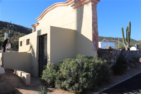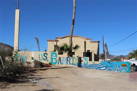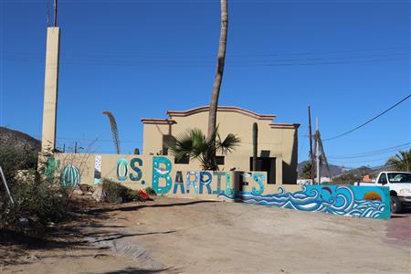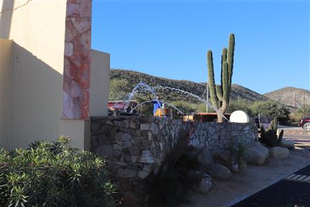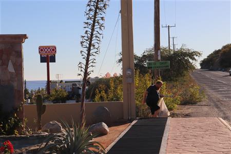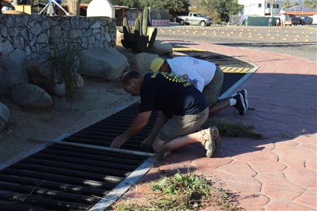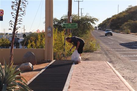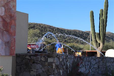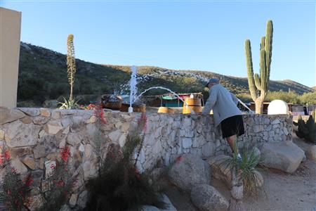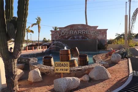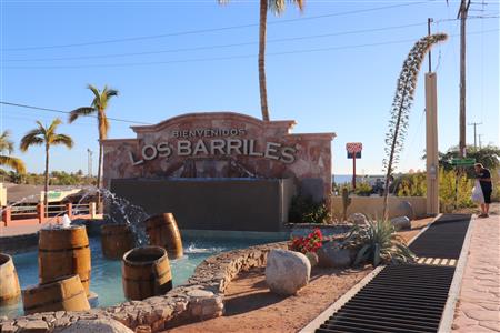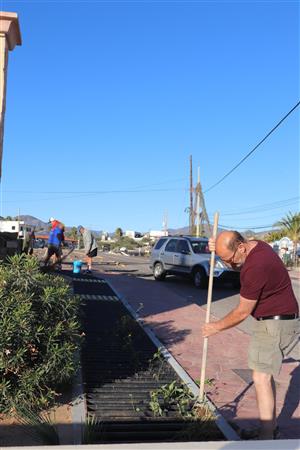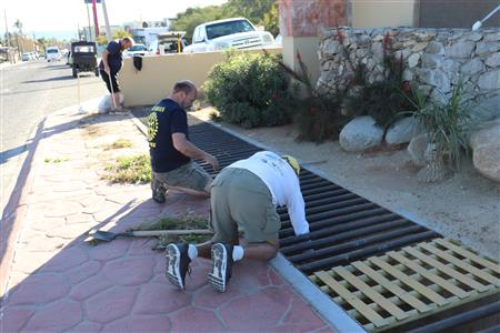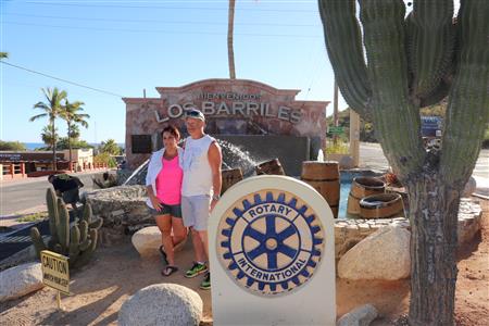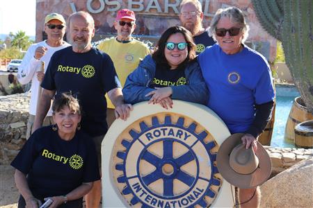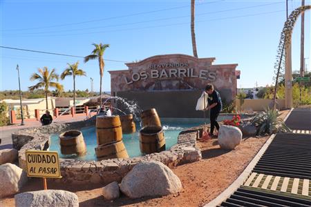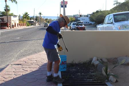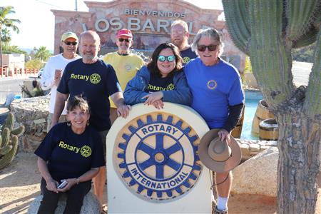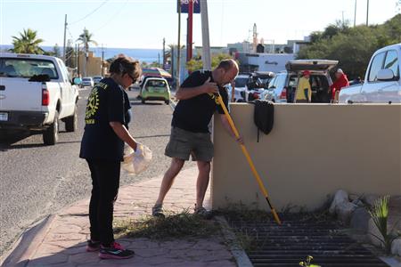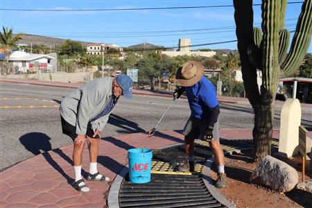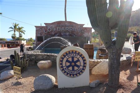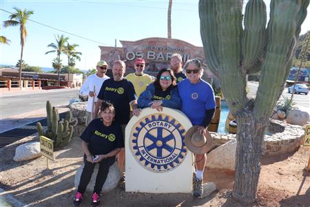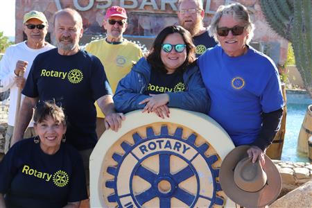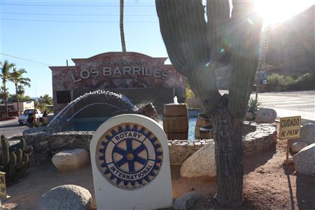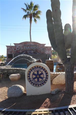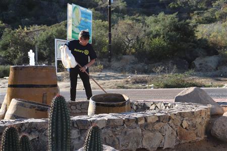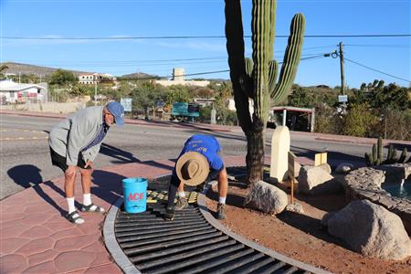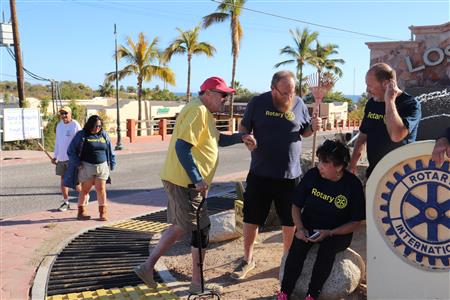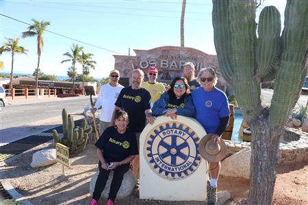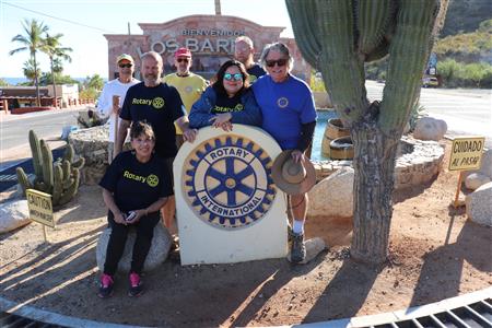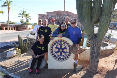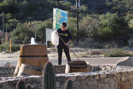 Los Barriles Rotary members gather to clean the fountain area.