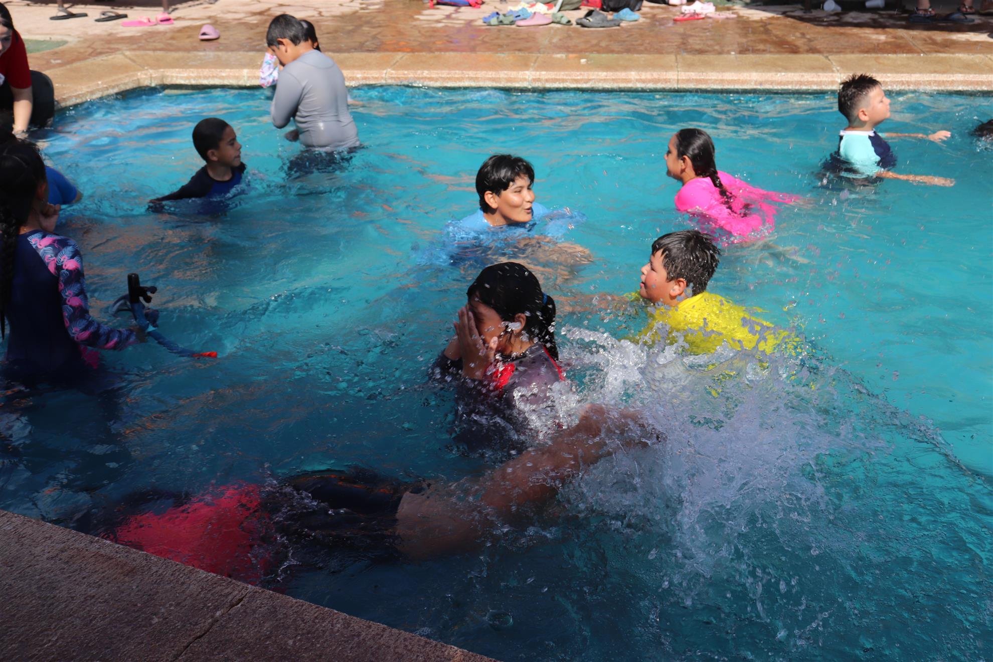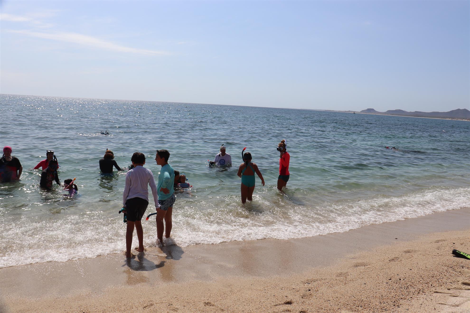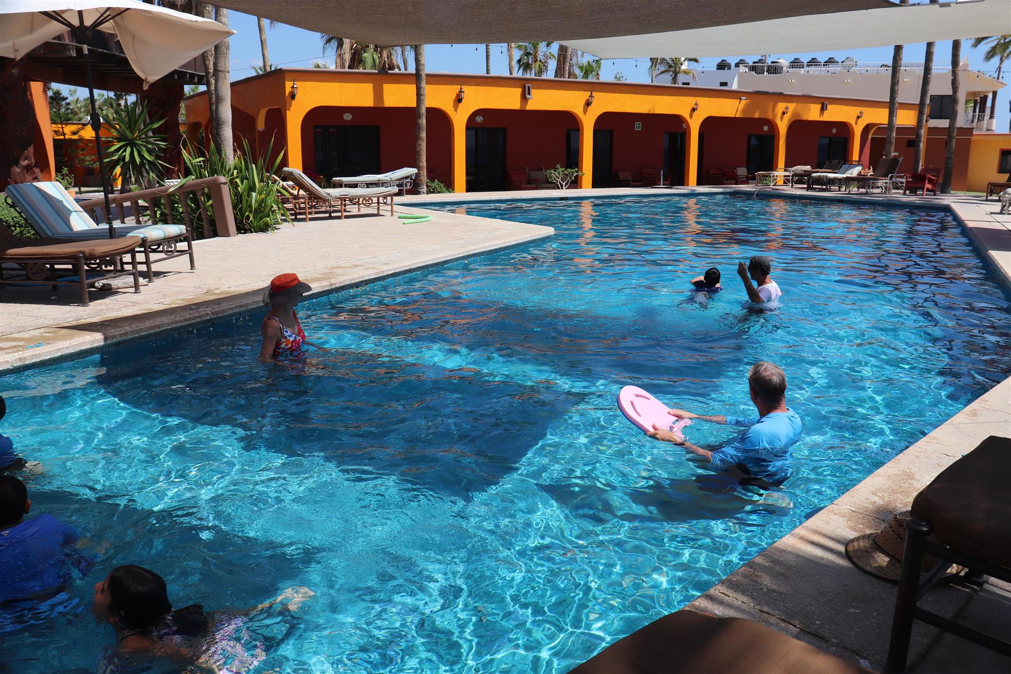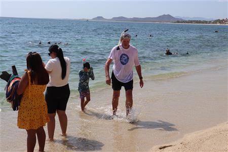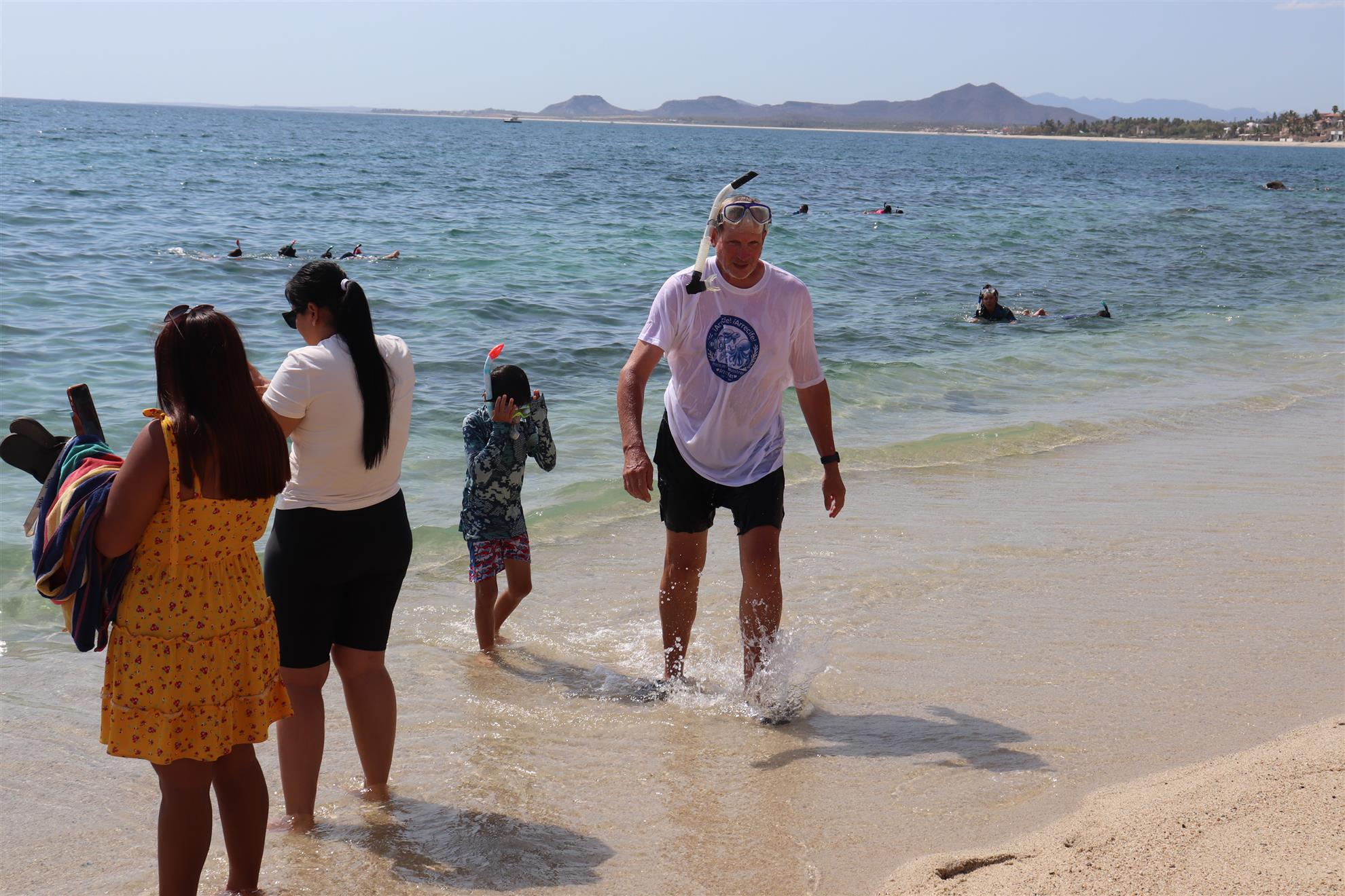 Los Barriles Club Rotarians volunteer to instruct swimming to children. Teaching children to swim improves safety, health and provides positive attitude for children.