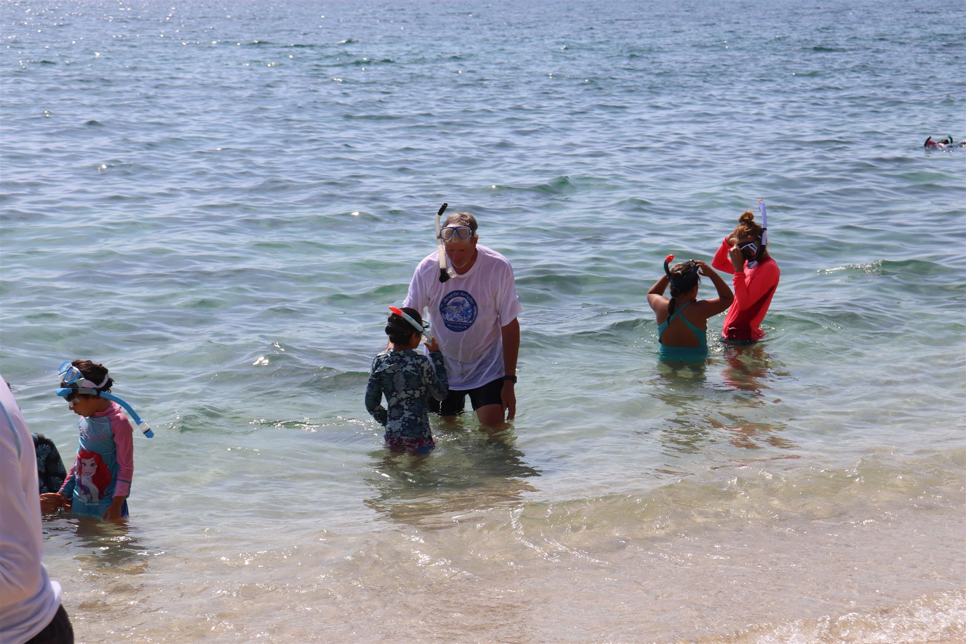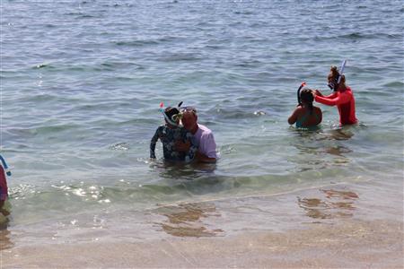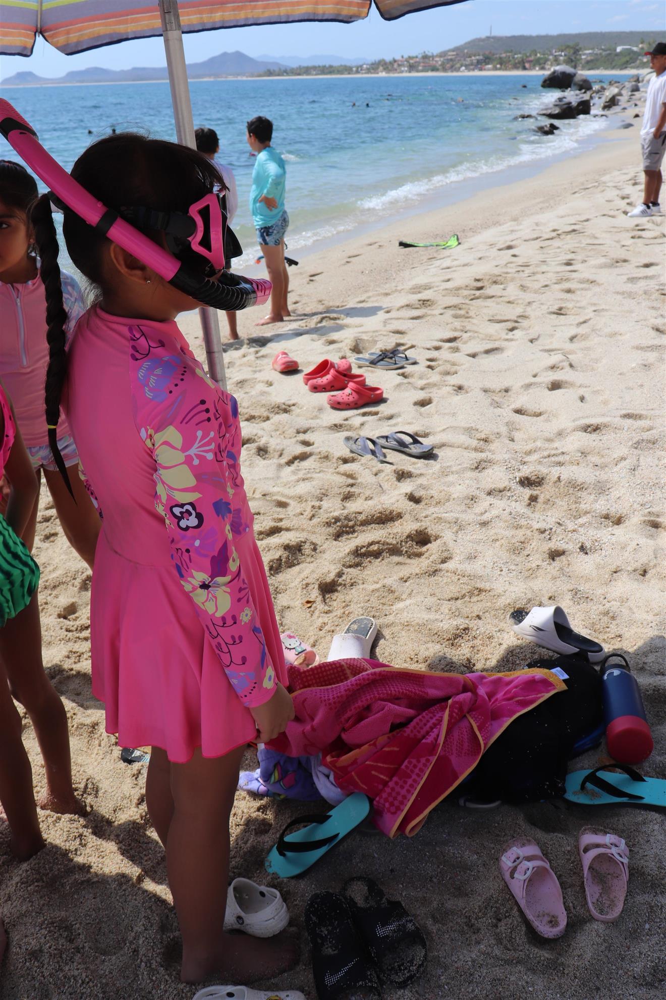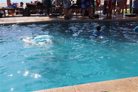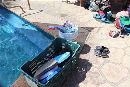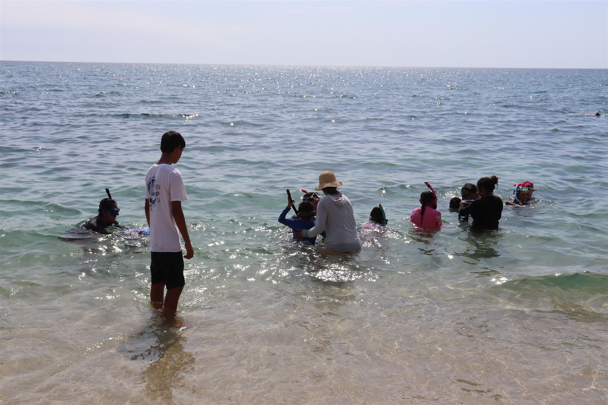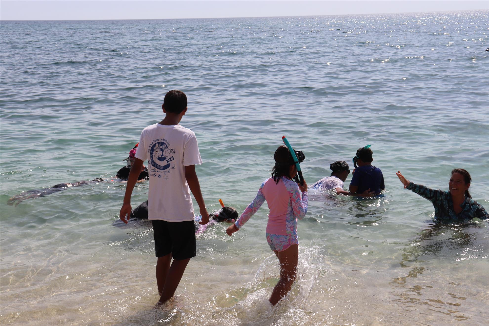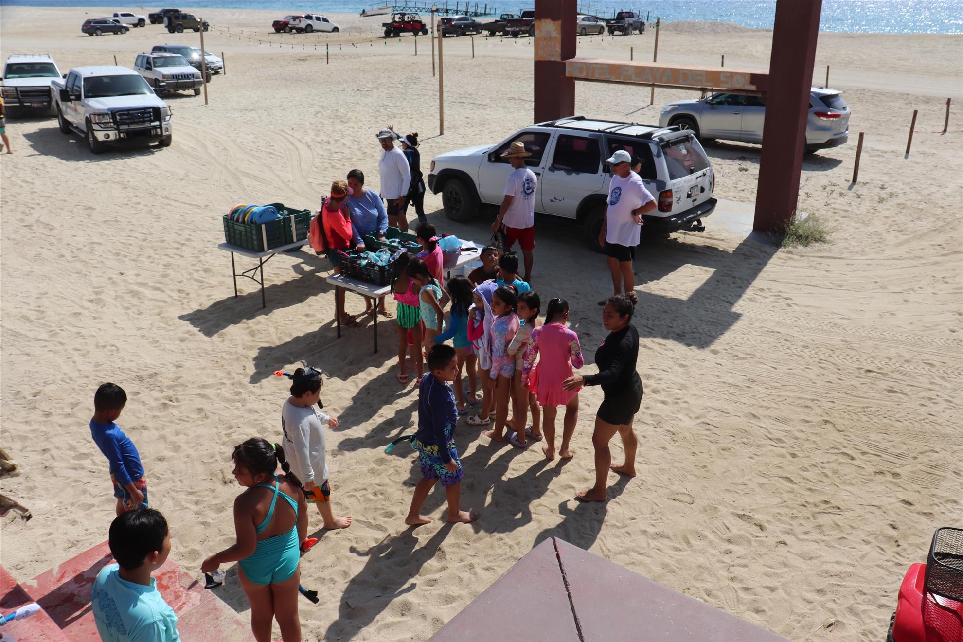 Los Barriles Club Rotarians volunteer to instruct swimming to children. Teaching children to swim improves safety, health and provides positive attitude for children.