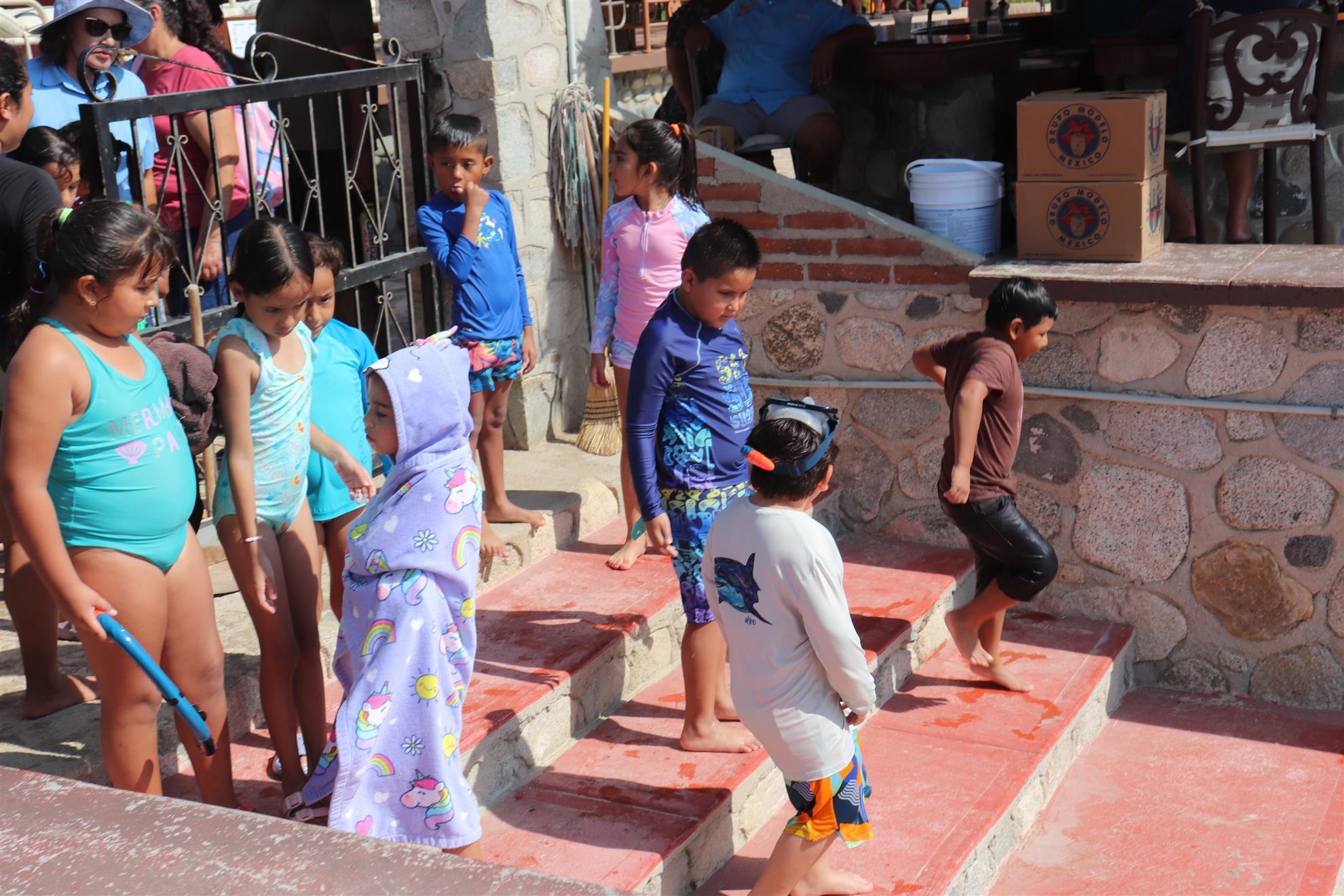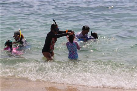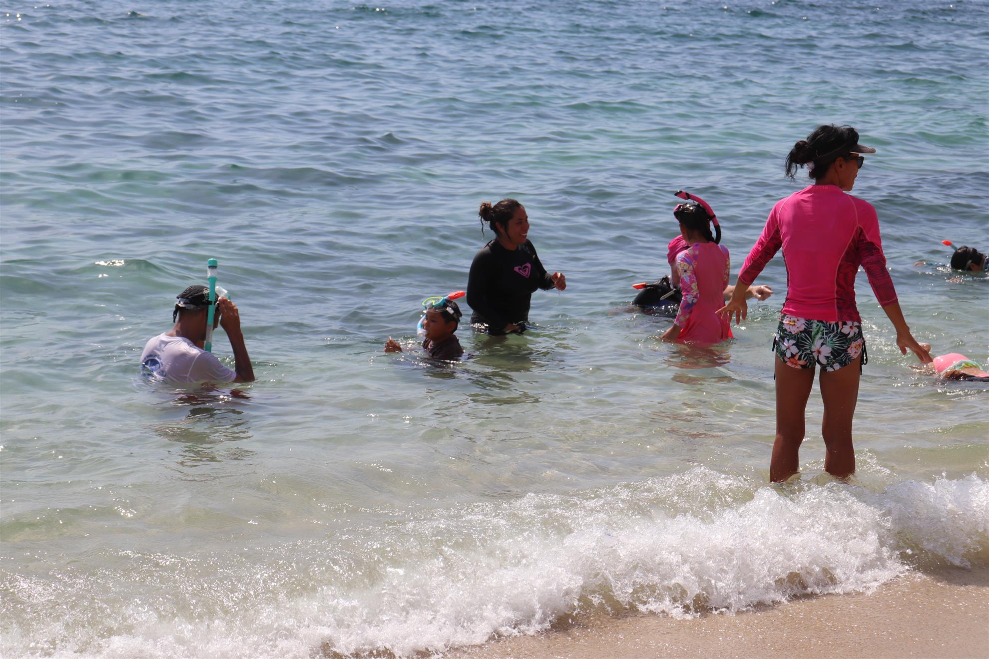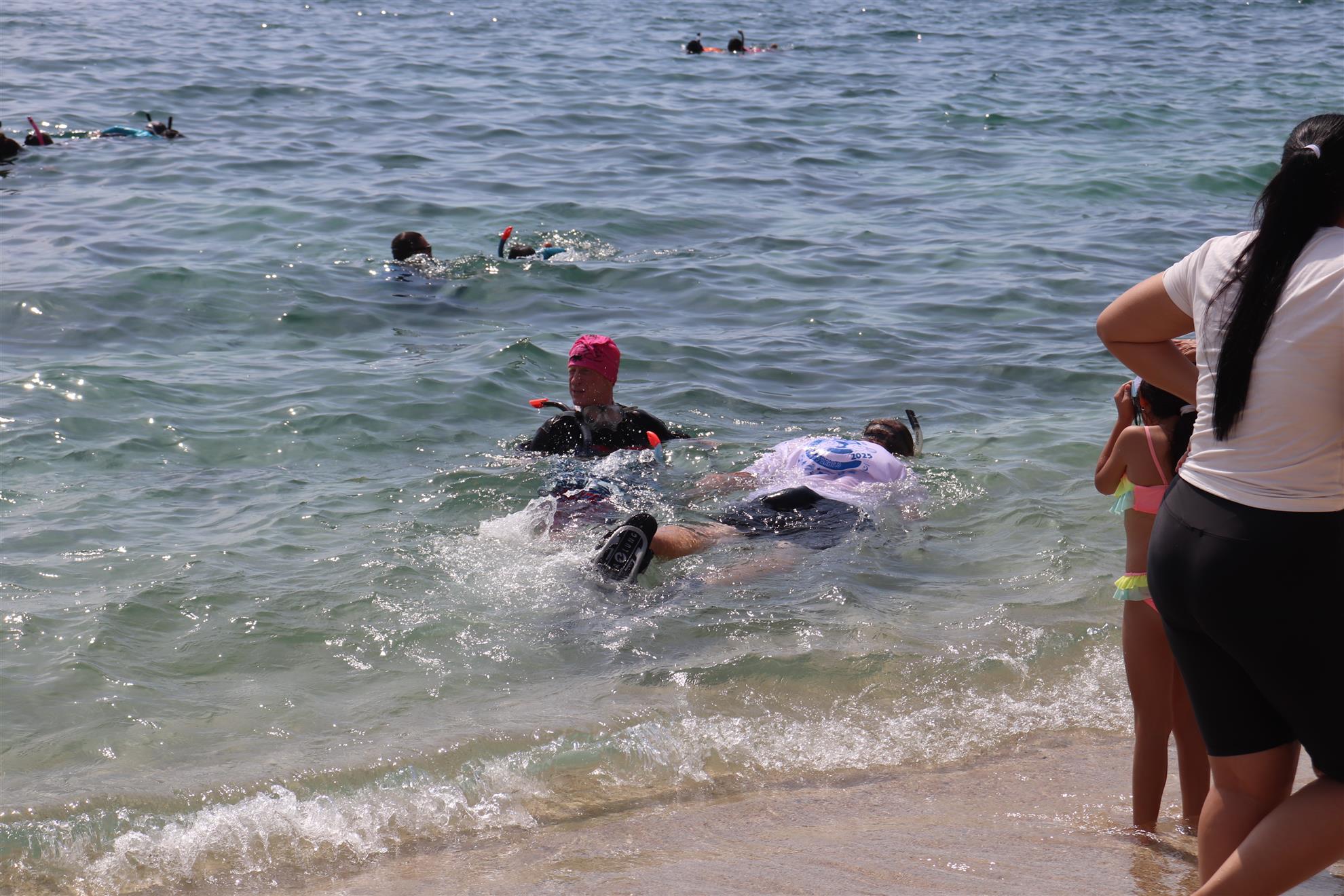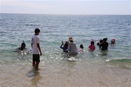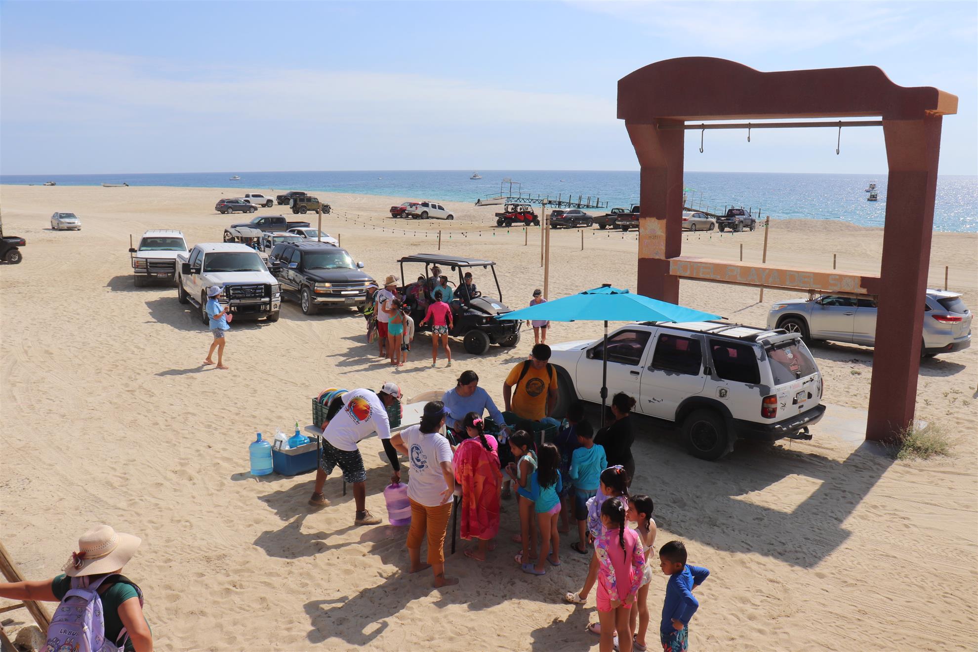 Los Barriles Club Rotarians volunteer to instruct swimming to children. Teaching children to swim improves safety, health and provides positive attitude for children.