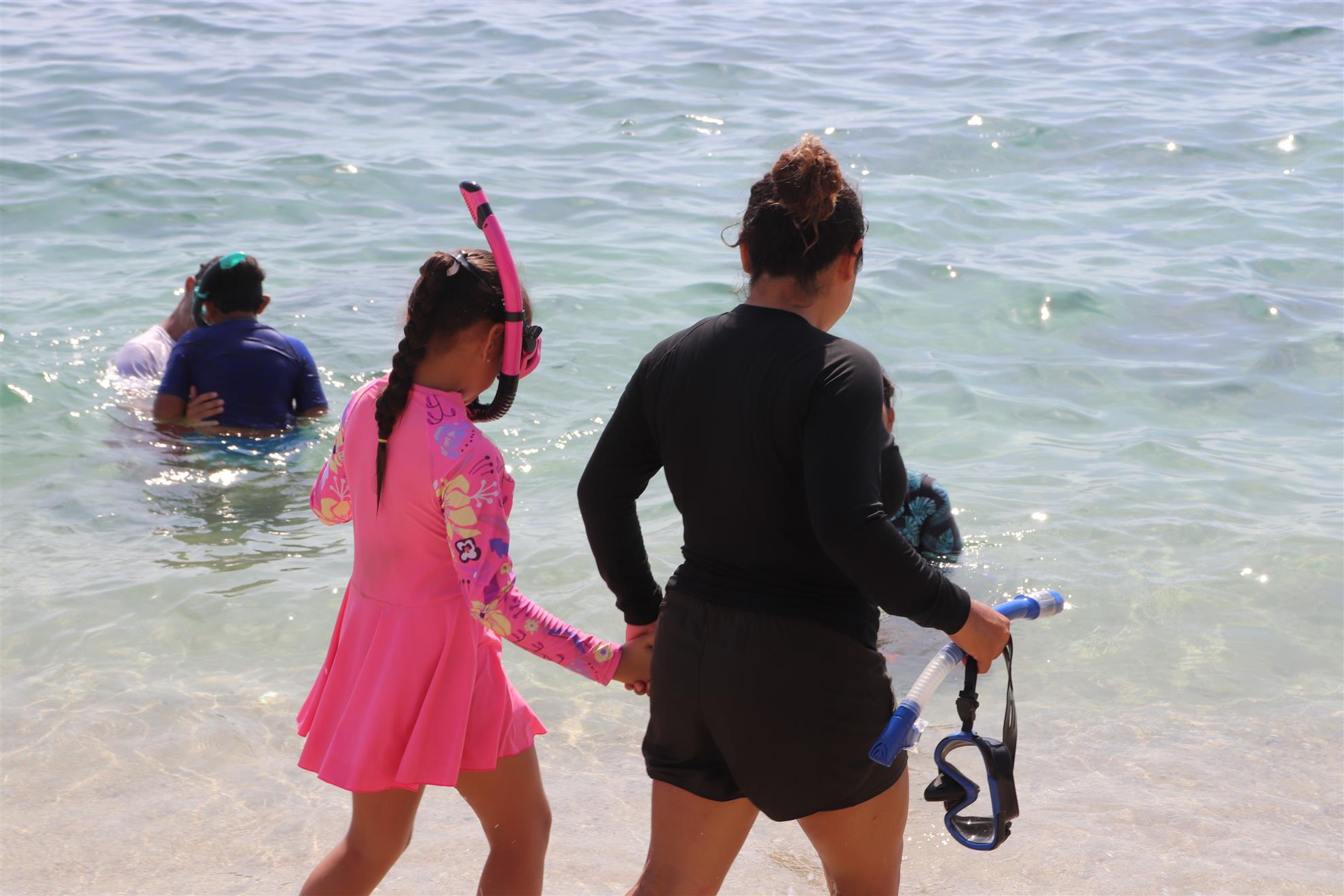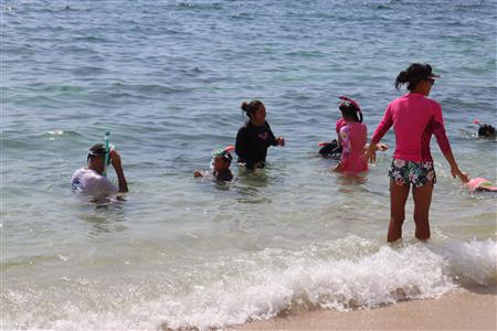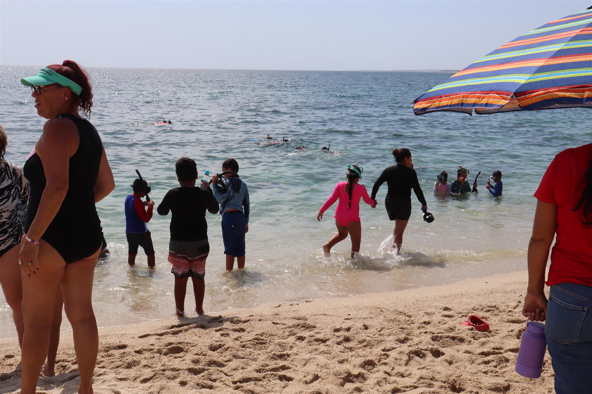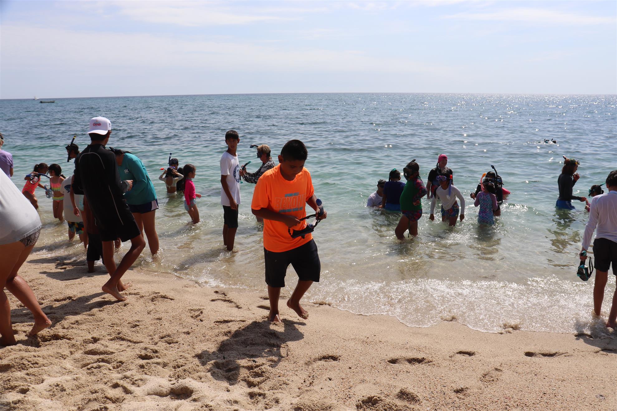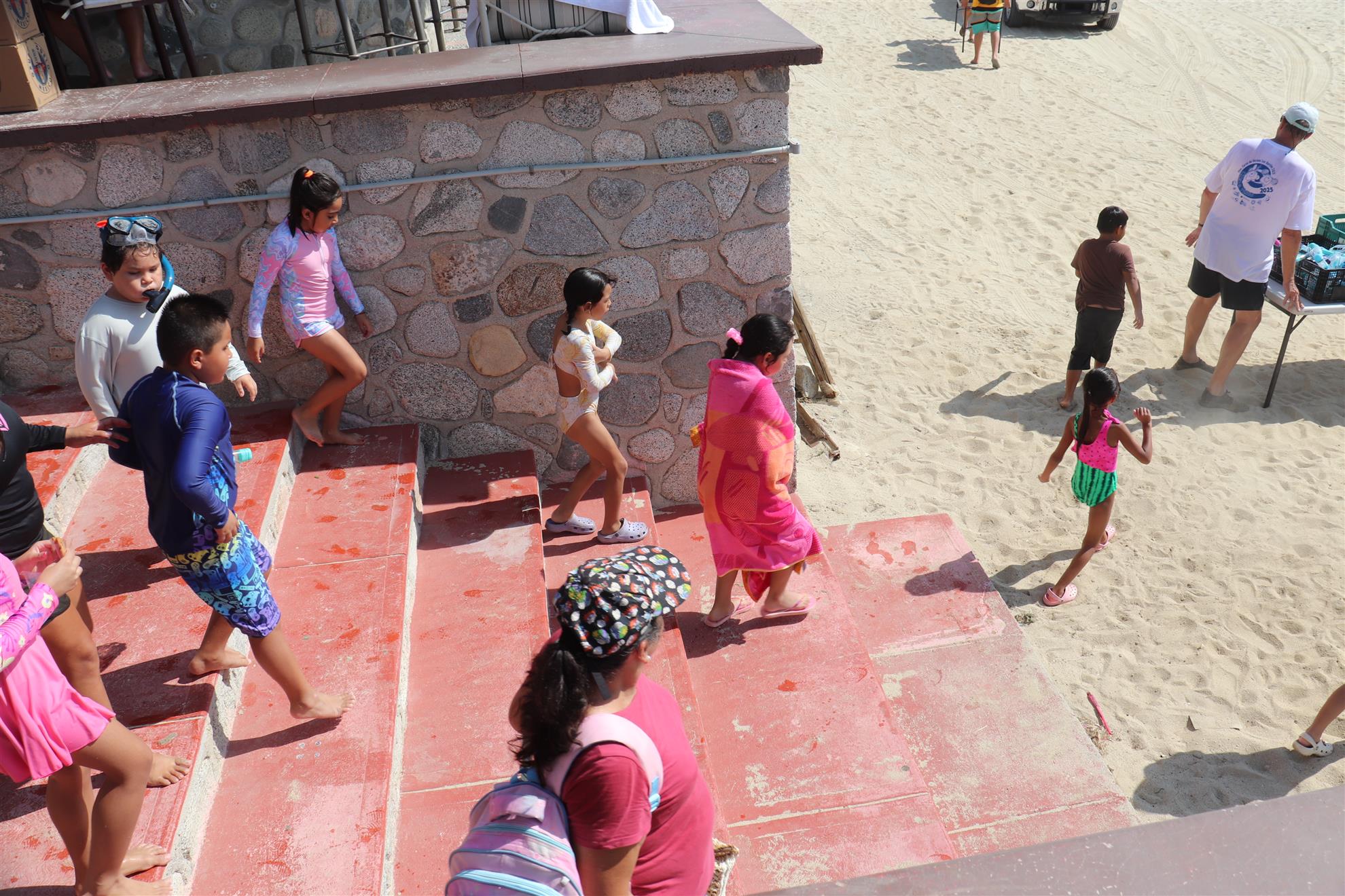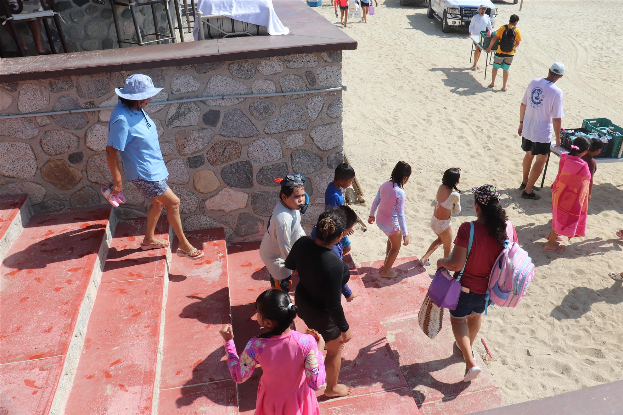 Los Barriles Club Rotarians volunteer to instruct swimming to children. Teaching children to swim improves safety, health and provides positive attitude for children.