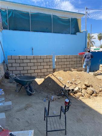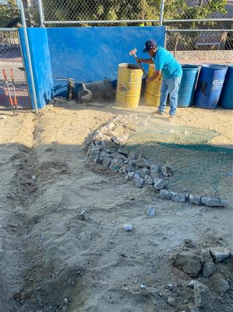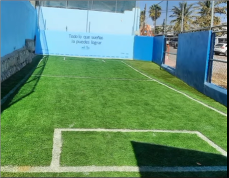 In the spring of 2025 our club donated funds to help create a mini soccer field by providing materials for a wall to separate trash bins from the soccer area.