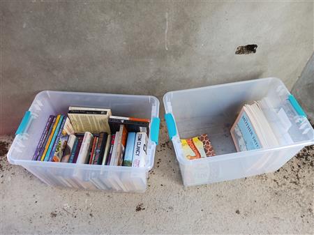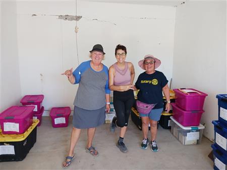 Club Rotario secured waterproof bins and helped move books into those bins and transport the bins and other items donated to the El Cardonal Library to weather proof storage.